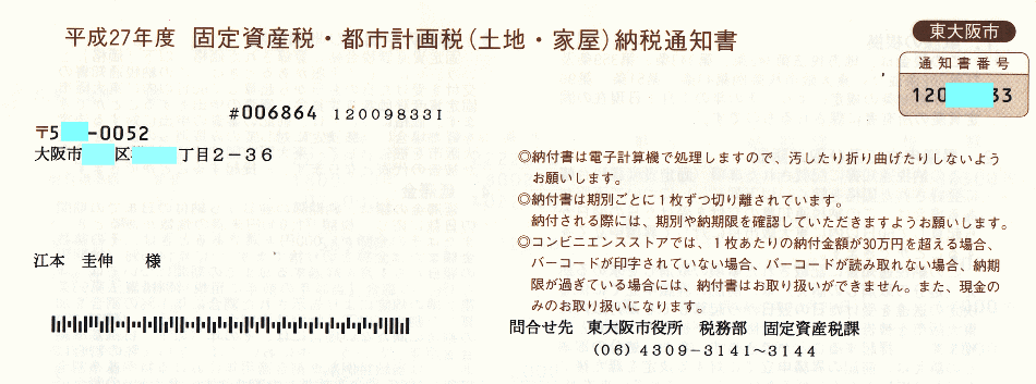 毎年4月中旬から5月初旬にかけてその年の1月1日現在の登記名義人に固定資産税・都市計画税の請求書が送られてきます。 こんな感じのものです。 ■固定資産税・都市計画税(土地・家屋)納税通知書とはこんなものです。