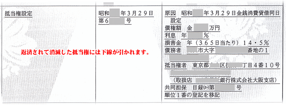銀行(もちろんサラ金など消費者金融などの場合もあります)などの金融機関がお金を貸し出す時に抵当権を設定します。 そこには抵当権設定の種類や設定日時、金額、債権者(銀行の支店名まで)が記載されています。 もちろん、過去に返済がされている抵当権が設定された履歴なども調べることができます。 これはこれで親の相続財産を調べる有力な情報源になります。 ひとつの登記簿に設定されていた過去の抵当権から新たに相続財産が見つかったというケースもありました。 ※これは昔に親が買っていた原野の別荘地でした。 相続放棄するかしないか?その判断材料にもなりますよね。